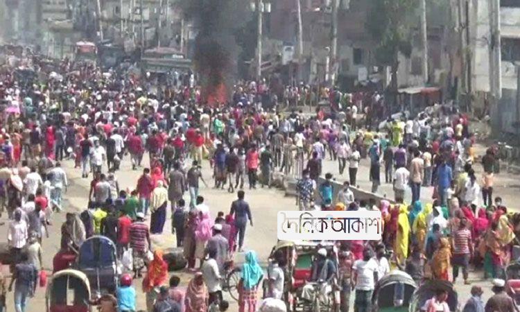 বেতন-বোনাসের দাবিতে টঙ্গীতে পোশাক শ্রমিকদের মহাসড়ক অবরোধ