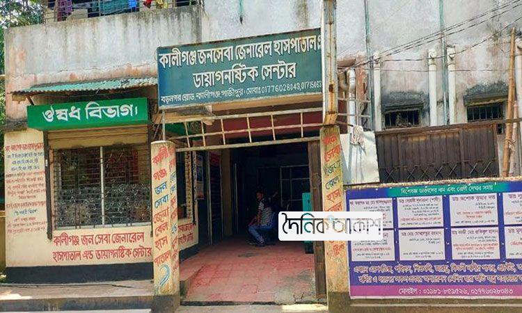 আকাশ জাতীয় ডেস্ক: গাজীপুরের কালীগঞ্জে জনসেবা জেনারেল হাসপাতাল অ্যান্ড ডায়াগনস্টিক সেন্টারে ডাক্তারের ভুল চিকিৎসায় শিরিন বেগম (৩২) নামে এক প্রসূতির