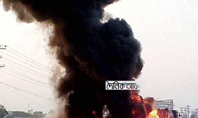গাজীপুরে বিটুমিনবাহী ট্রাকের আগুনে হেলপার ছাই