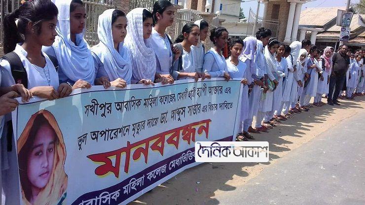 টাঙ্গাইলে ভুল চিকিৎসায় কলেজছাত্রীর মৃত্যু: প্রতিবাদে মানববন্ধন