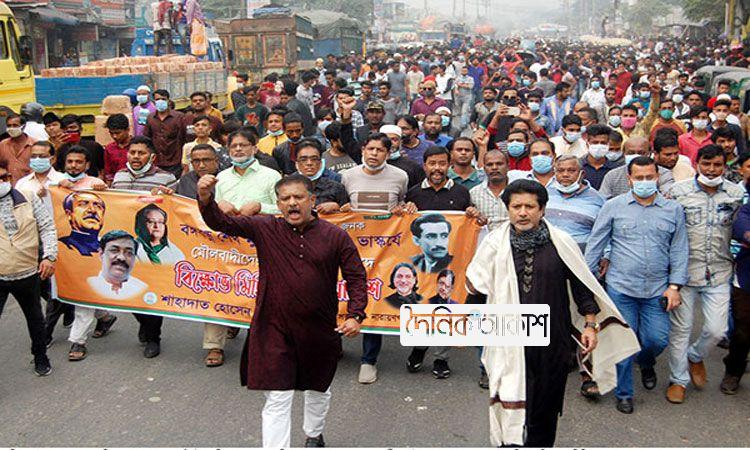 আকাশ জাতীয় ডেস্ক: কুষ্টিয়ায় জাতির জনক বঙ্গবন্ধু শেখ মুজিবুর রহমানের ভাস্কর্যে হামলার প্রতিবাদে মিছিল ও সমাবেশ করেছে নারায়ণগঞ্জ মহানগর যুবলীগ।