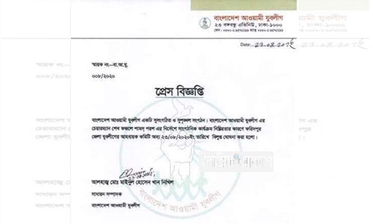 ফরিদপুরে ছাত্রলীগের পর এবার যুবলীগের কমিটি বাতিল