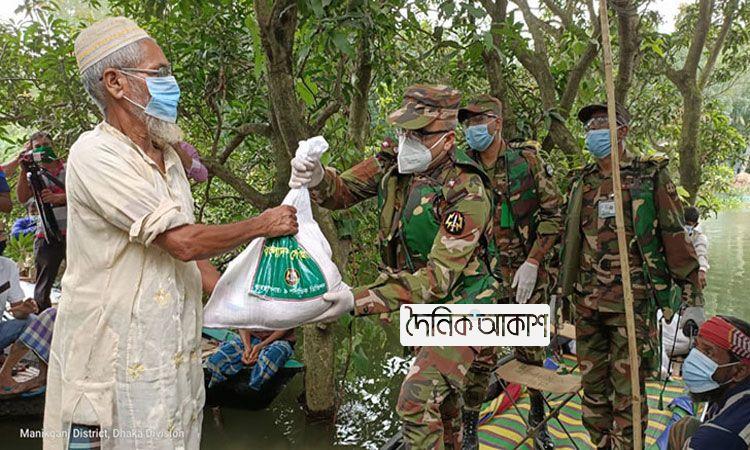 মানিকগঞ্জে বন্যার্ত মানুষের পাশে সেনাবাহিনী
