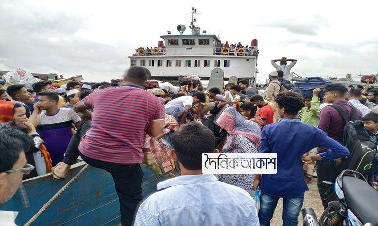 শিমুলিয়া ঘাটে যাত্রীদের উপচে পড়া ভিড়