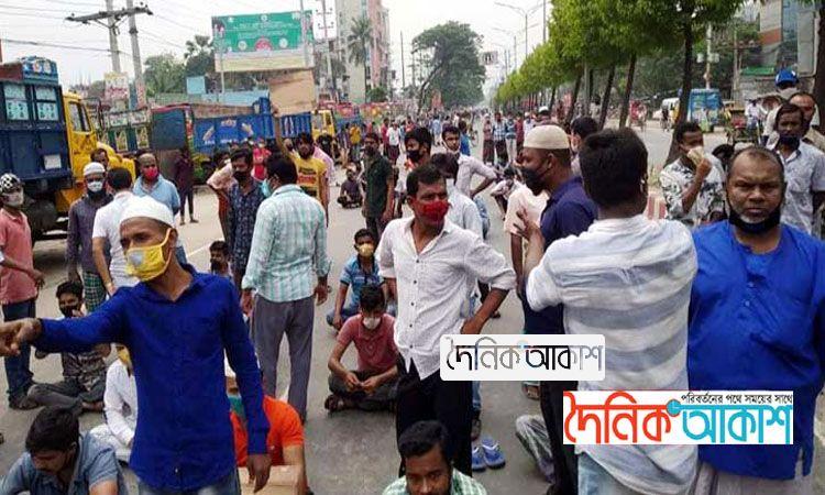 খাবারের দাবিতে পরিবহন শ্রমিকদের মহাসড়ক অবরোধ