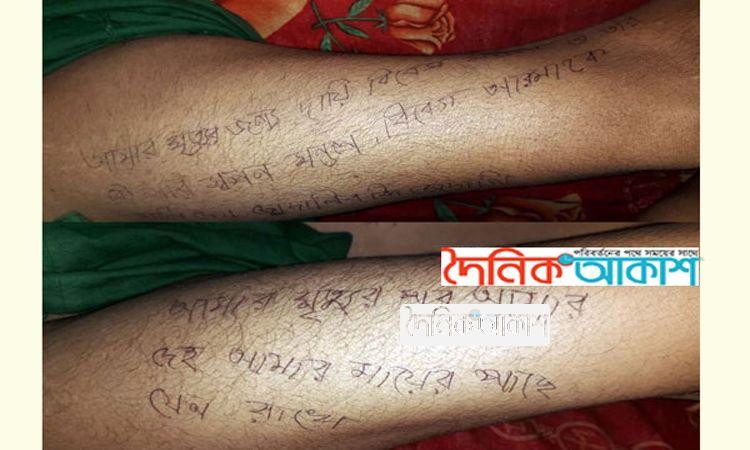 দুই পায়ে মৃত্যুর কারণ ও দায়ীদের নাম লিখে গেলেন গৃহবধূ