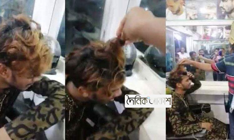 বখাটে কিশোরের চুল কাটতে বাধ্য করলো পুলিশ