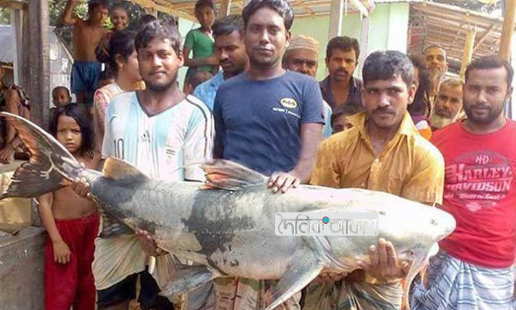 জেলেদের জালে ৪৫ কেজি ওজনের বাঘাইড়
