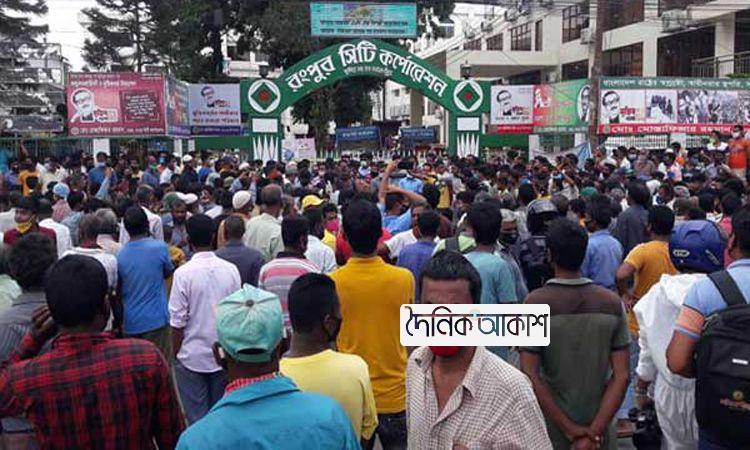 রংপুরে ত্রাণের দাবিতে সিটি করপোরেশন ঘেরাও