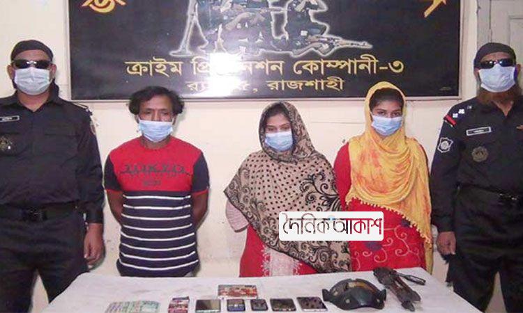 আকাশ জাতীয় ডেস্ক: জয়পুরহাটে ড্যান্সগ্রুপের আড়ালে ব্ল্যাকমেইল করে, তরুণীদের দেহ ব্যবসায় বাধ্য করানোর অভিযোগে তিনজনকে আটক করেছে র্যাব। শনিবার মধ্যরাতে