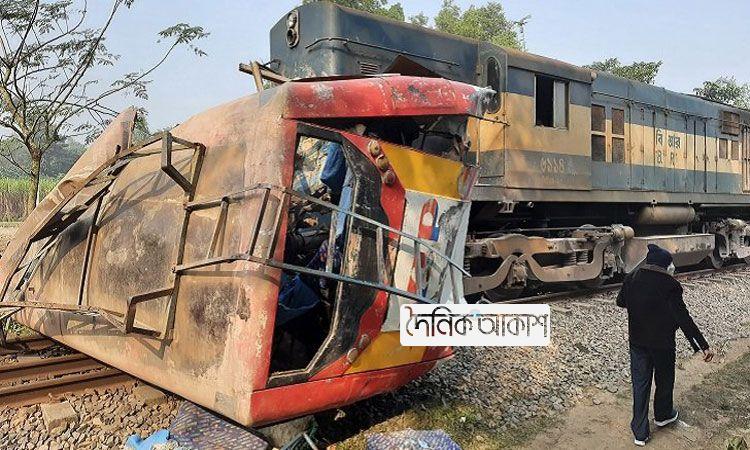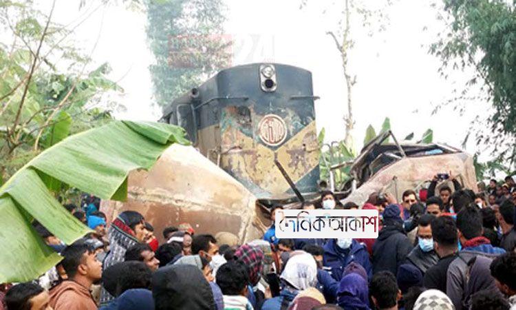 জয়পুরহাটে ট্রেনের ধাক্কায় চুরমার বাস, নিহত ১২