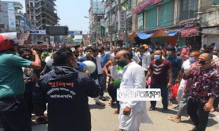 রাজশাহীতে দোকান খোলার দাবিতে বিক্ষোভ