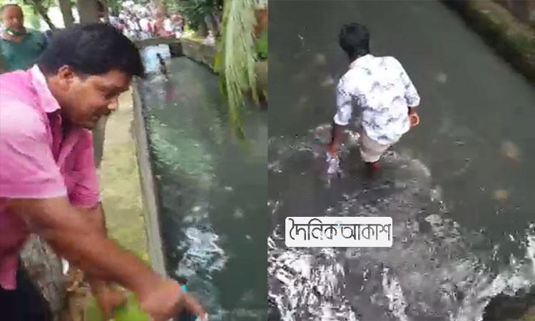 রাজশাহীতে ড্রেনে টাকা কুড়াচ্ছে মানুষ