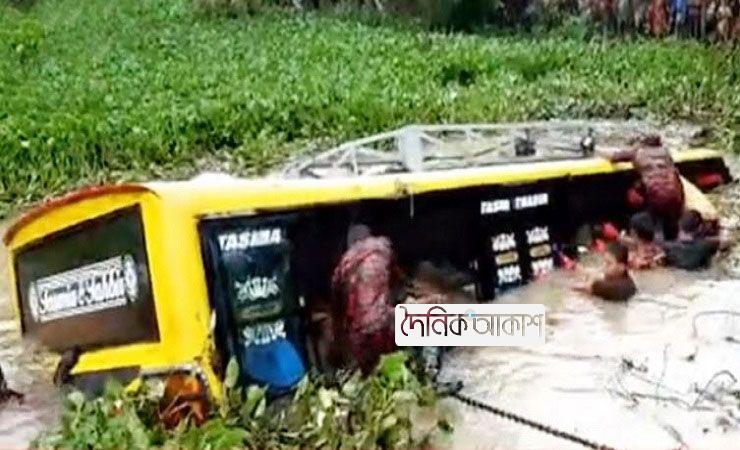 সুনামগঞ্জে নিয়ন্ত্রণ হারিয়ে খালে বাস, নিখোঁজ ২০
