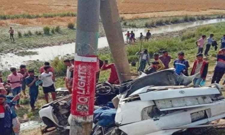 প্রাইভেটকার নিয়ন্ত্রণ হারিয়ে বৈদ্যুতিক খুঁটির সঙ্গে ধাক্কা, নিহত ৩