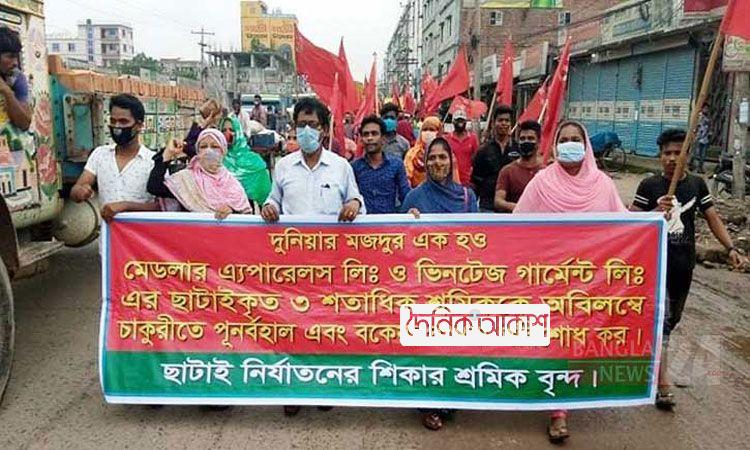 শ্রমিক ছাঁটাই বন্ধ ও বেতন পরিশোধের দাবিতে আশুলিয়ায় বিক্ষোভ