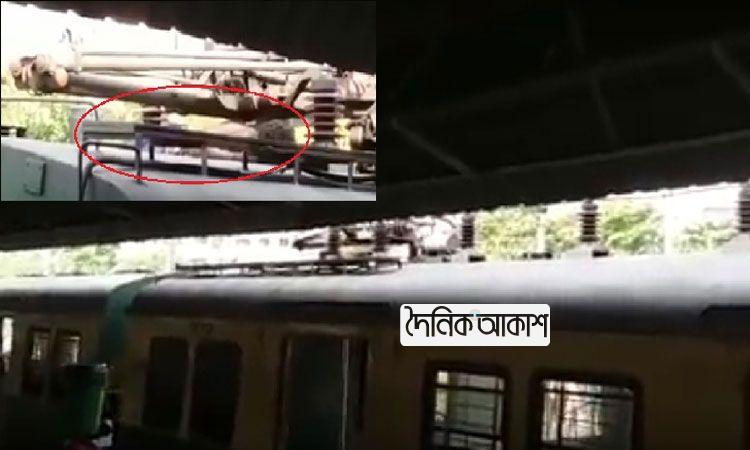 চলন্ত ট্রেনের ছাদে আটকে আছে মৃতদেহ, ভিডিও