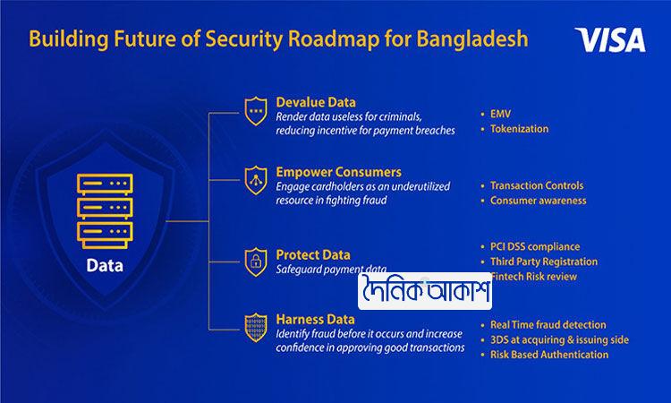 আকাশ আইসিটি ডেস্ক : বিশ্বখ্যাত পেমেন্ট টেকনোলজি কোম্পানি ভিসা সম্প্রতি বাংলাদেশে তাদের ‘ফিউচার অব সিকিউরিটি রোডম্যাপ’ প্রণয়ন করেছে, যার ভিত্তিতে