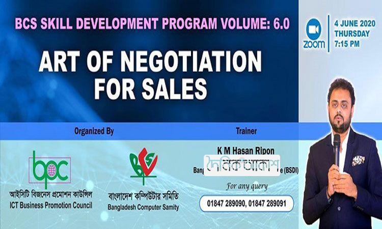 আকাশ আইসিটি ডেস্ক : বাংলাদেশ কম্পিউটার সমিতি (বিসিএস) সদস্যদের দক্ষতা বৃদ্ধিতে স্কিল ডেভেলপমেন্ট প্রোগ্রামের আওতায় ‘আর্ট অব নেগোসিয়েশন ফর সেলস’