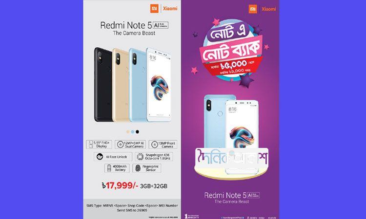 শাওমি রেডমি নোট-৫ এ আকর্ষণীয় ক্যাশব্যাক অফার