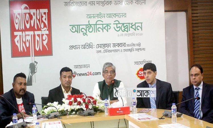 আকাশ আইসিটি ডেস্ক: জাতিসংঘের দাপ্তরিক ভাষা হিসেবে বাংলা ব্যবহার সময়ের দাবি বলে মন্তব্য করেছেন ডাক, টেলিযোগাযোগ ও তথ্যপ্রযুক্তি মন্ত্রী মোস্তাফা