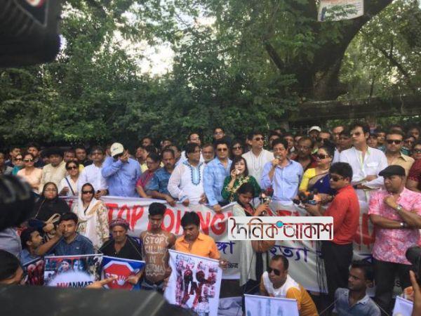 অাকাশ বিনোদন ডেস্ক: মিয়ানমারে রোহিঙ্গাদের ওপর নির্যাতনের প্রতিবাদে রাজপথে নেমেছে বাংলাদেশ চলচ্চিত্র পরিবার। আজ সোমবার সকালে তারা মানববন্ধন কর্মসূচি