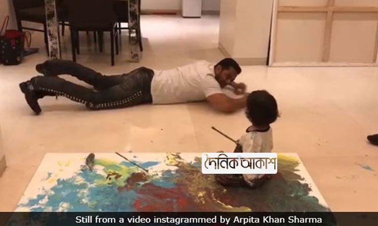 ভাগ্নেকে ছবি আঁকা শেখাচ্ছেন সালমান (ভিডিও
