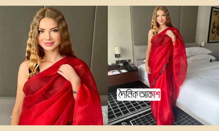 লাল শাড়িতে ওটিলিয়া