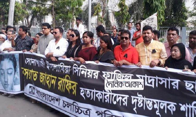 আকাশ বিনোদন ডেস্ক: মাদ্রাসাছাত্রী নুসরাত জাহান রাফিকে (১৮) যৌন নিপীড়নের পর কেরোসিন ঢেলে পুড়িয়ে হত্যার ঘটনায় রাস্তায় নেমেছেন চলচ্চিত্র ও