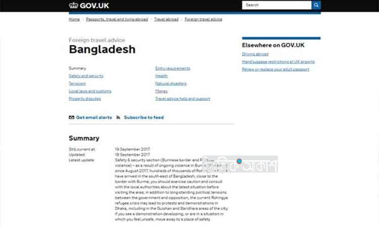 বাংলাদেশ ভ্রমণে ব্রিটেন নাগরিকদের সতর্কতা