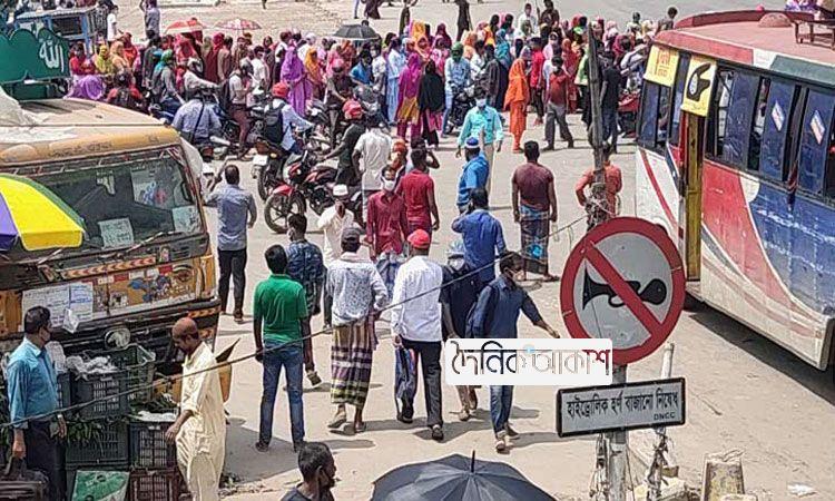 উত্তরায় গার্মেন্টস শ্রমিকদের সড়ক অবরোধ