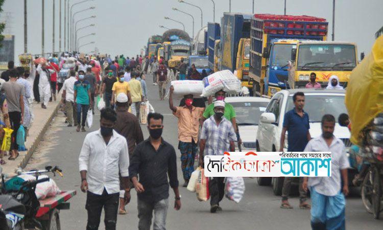 আকাশ জাতীয় ডেস্ক: করোনা ভাইরাস সংক্রমণের ঝুঁকির মধ্যেও ঈদুল ফিতরে নানা কৌশলে গ্রামের বাড়ি ফিরছেন রাজধানীর লোকজন। ভেঙে ভেঙে বিভিন্ন