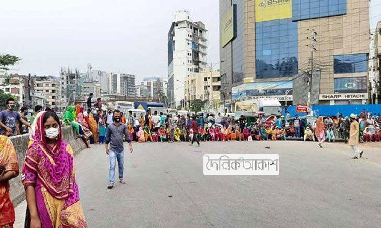 মহাসড়ক অবরোধ করে উত্তরায় গার্মেন্টস শ্রমিকদের বিক্ষোভ