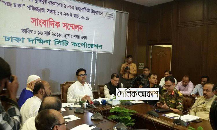 অাকাশ জাতীয় ডেস্ক: জাতির জনক বঙ্গবন্ধু শেখ মুজিবুর রহমানের জন্মদিনে ঢাকাকে ‘স্বচ্ছ’ করতে বিশেষ পরিচ্ছন্নতা অভিযান উদ্বোধন করেছে ঢাকা দক্ষিণ