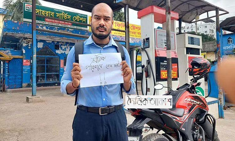 তেল কম দেওয়ার অভিযোগে পাম্পে অবস্থান নিয়ে প্রতিবাদ