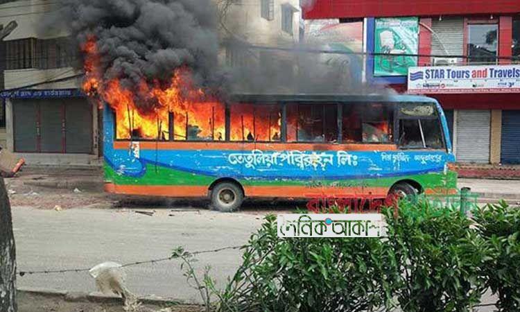 মিরপুরে বাসচাপায় স্কুলছাত্রীর মৃত্যু, বাসে আগুন