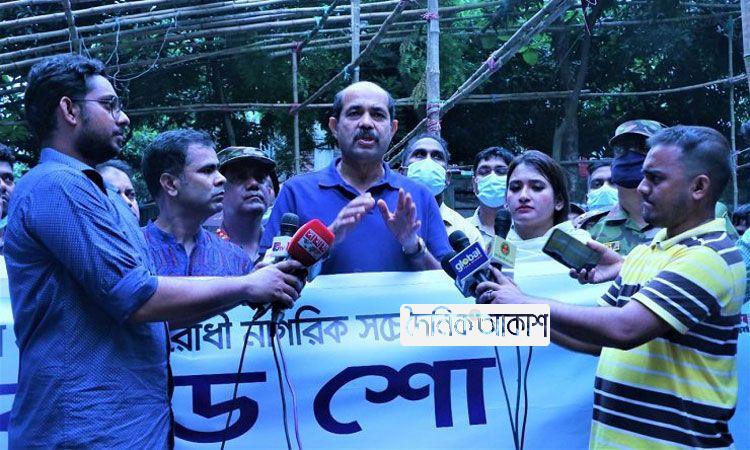 আকাশ জাতীয় ডেস্ক: রেলওয়ের অব্যবস্থাপনার প্রতিবাদে কমলাপুর রেলওয়ে স্টেশনে অবস্থান কর্মসূচি পালনরত মহিউদ্দিন রনি মঙ্গলবার লংমার্চে যাচ্ছেন। আকাশ নিউজ কে তিনি