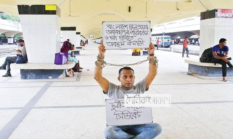 আকাশ জাতীয় ডেস্ক: রেলের অব্যবস্থাপনা, দুর্নীতিসহ বিভিন্ন অনিয়মের প্রতিবাদে রাজধানীর কমলাপুর রেলস্টেশনে অবস্থান নেওয়া ঢাকা বিশ্ববিদ্যালয়ের (ঢাবি) মহিউদ্দিন রনির অবস্থানের