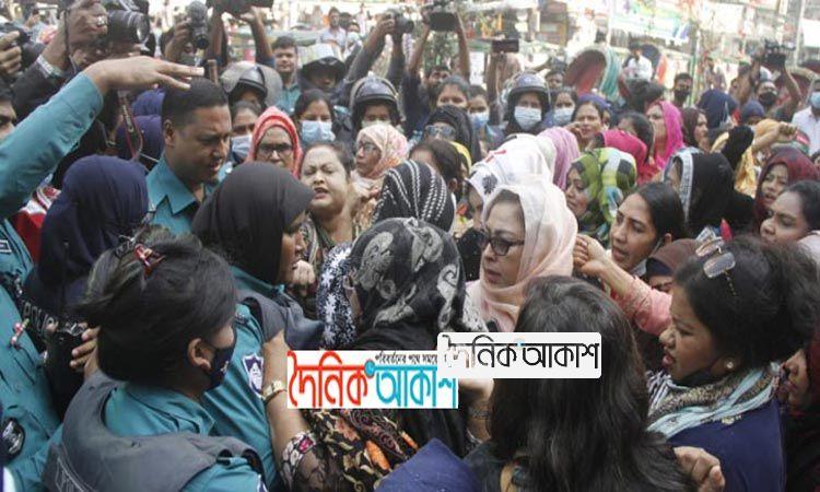 নয়াপল্টনে পুলিশের সঙ্গে মহিলা দলের ধস্তাধস্তি