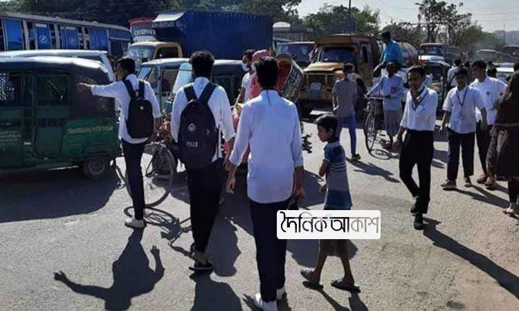 রামপুরায় ব্রিজ এলাকায় শিক্ষার্থীদের বিক্ষোভ, যান চলাচল বন্ধ