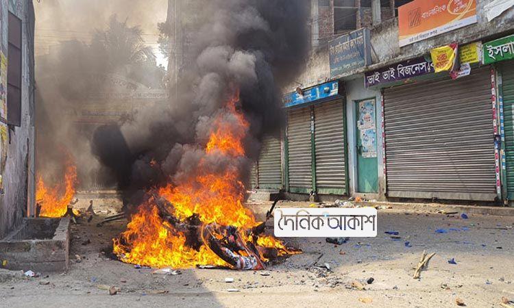 শ্রমিক বিক্ষোভ থেকে দুটি মোটরসাইকেলে আগুন