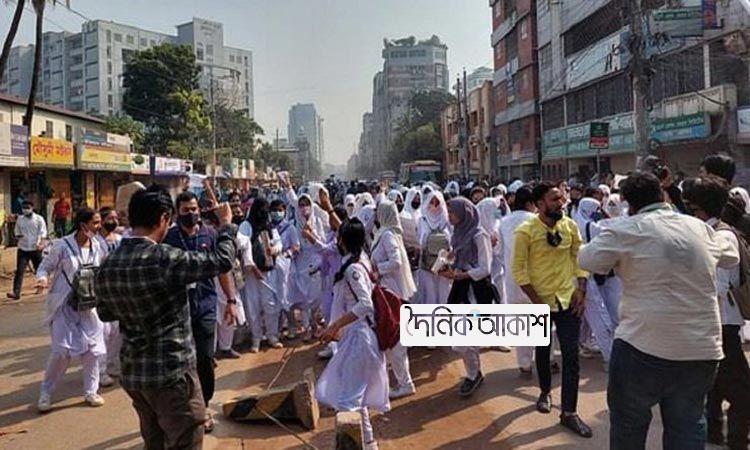 রাজধানীতে শিক্ষার্থীদের সড়ক অবরোধ, গাড়ি ভাঙচুর