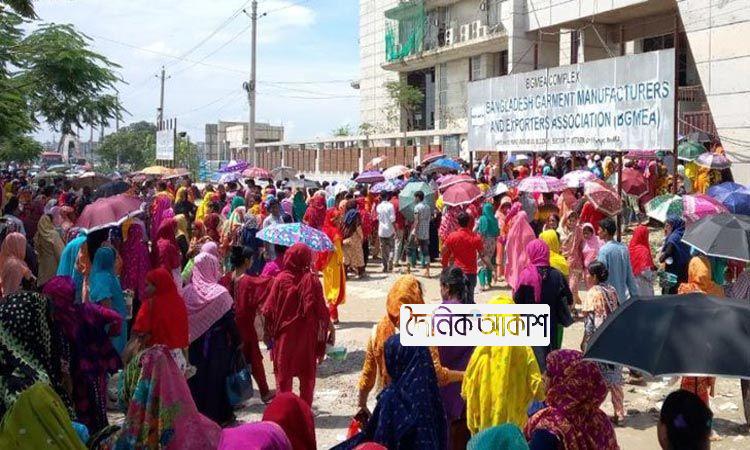 বকেয়া দাবিতে বিজিএমইএ ভবনের সামনে গার্মেন্ট শ্রমিকদের অবস্থান