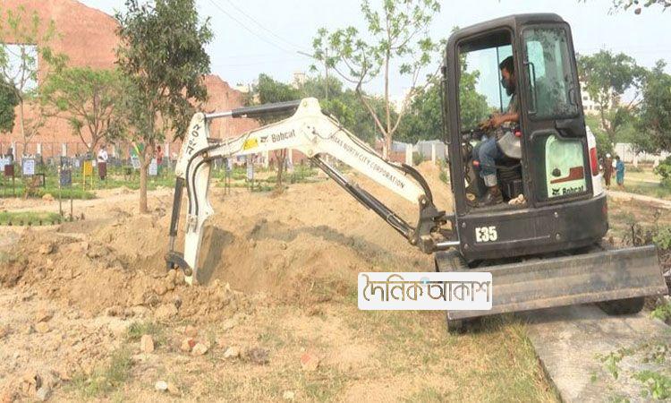 ঢাকায় খুঁড়ে রাখা হচ্ছে সারি সারি কবর
