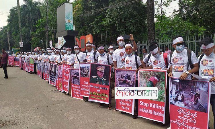 মিয়ানমারের বিরুদ্ধে ঢাকায় রাখাইনদের নজিরবিহীন বিক্ষোভ
