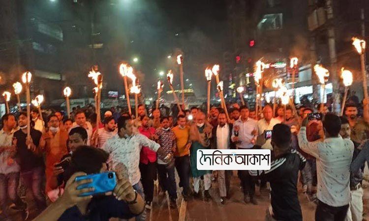 খালেদা জিয়ার মুক্তি দাবিতে মশাল মিছিল