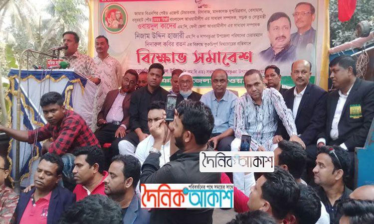 বসুরহাট সীমান্তে সড়ক অবরোধ করে কাদের মির্জা বিরোধী সমাবেশ
