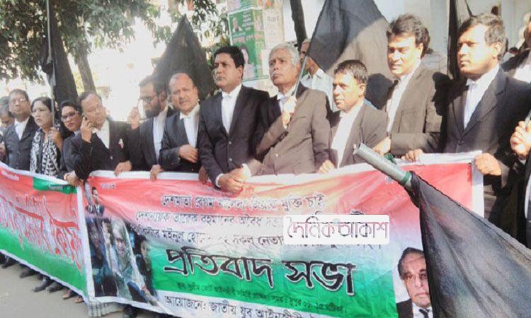 অাকাশ জাতীয় ডেস্ক: বিএনপির চেয়ারপারসন খালেদা জিয়ার মনোনায়নপত্র বাতিলের প্রতিবাদে সুপ্রিমকোর্টে কালো পতাকা নিয়ে বিক্ষোভ ও মানববন্ধন করেছেন আইনজীবীরা। রোববার