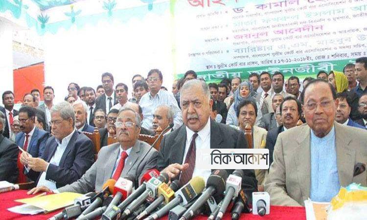 অাকাশ জাতীয় ডেস্ক: ‘গণতন্ত্র পুনরুদ্ধারে’ একাদশ জাতীয় সংসদ নির্বাচনে অংশ নেয়ার ঘোষণা দিয়েছে জাতীয় ঐক্যফ্রন্ট। ভোটে যাওয়ার ঘোষণা দিলেও ঐক্যফ্রন্ট