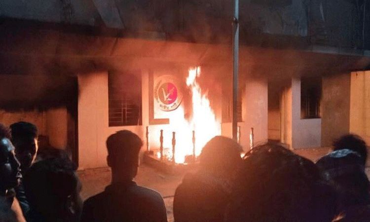 জাতীয় পার্টির কেন্দ্রীয় কার্যালয়ে আগুন দিল ছাত্র-জনতা